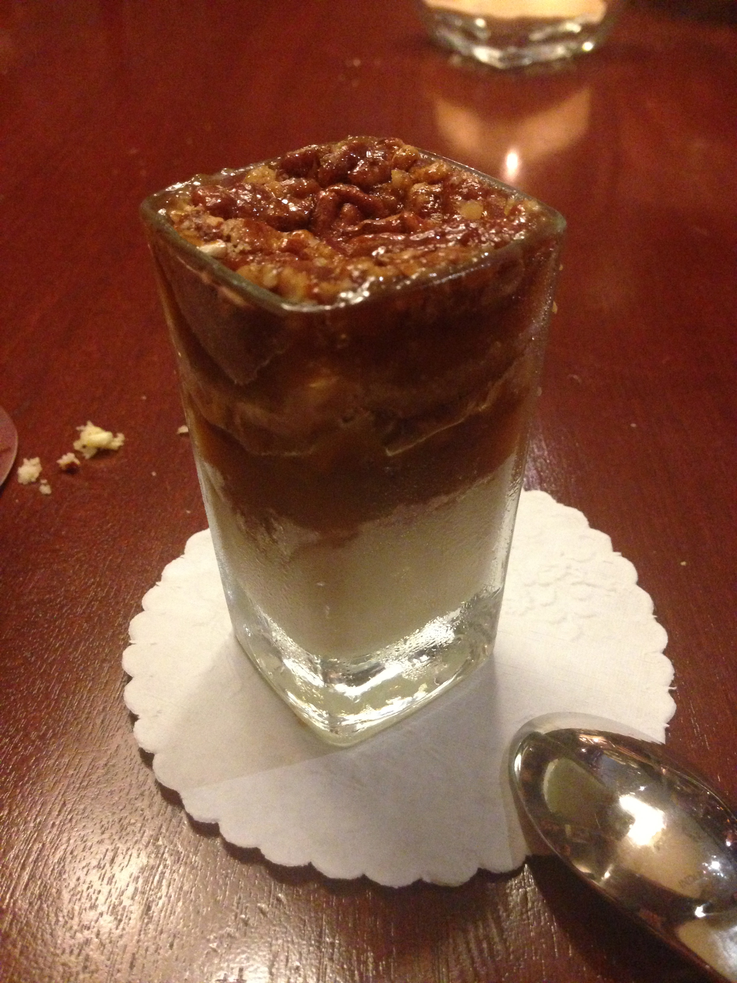 Review: Pretty solid food. The salad was a typical caesar salad, nothing overwhelming. It did have different greens, like arugula and romaine, but wasn’t anything like my beloved Sweet Green kale caesar. The dressing was light and the croutons were crunchy, an added bonus. The corn was super delicious- seasoned with parmesan and a chili rub, but a little salty. The dessert was divine! A sweet, sticky little pecan pie with vanilla bean mousse. Aka the perfect way to end a meal. Additionally, I sampled the house hummus (yum!) and the rocky road mini indulgence, which much to my chagrin snuck in a few mini marshmallows. I also tried the trout, which was fabulous but the fish tail creeped me out. Here I’ll add that I recently became pescatarian, an extremely difficult but necessary decision.